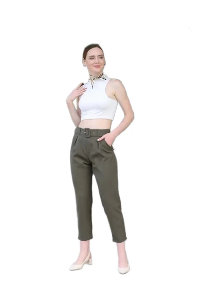 Kemer Ve Pile Detaylı Kumaş Pantolon 1754 Haki