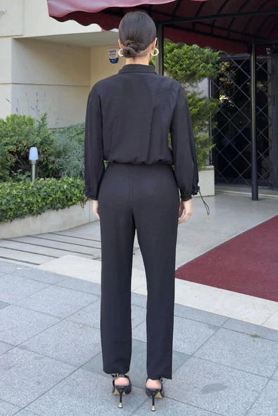 Bağlama Detaylı Pliseli İkili Şifon Takım 116-Siyah