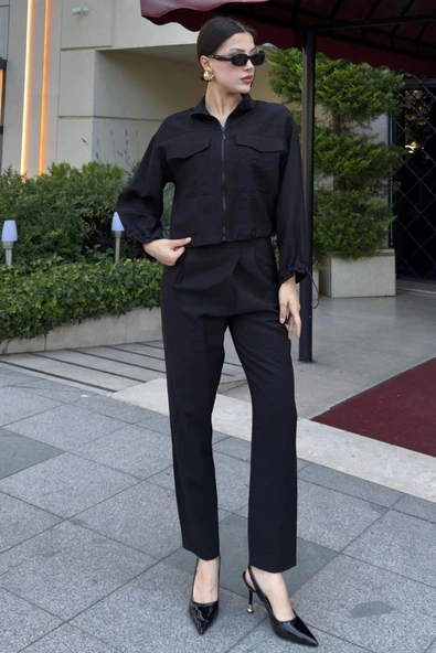 Cep Detaylı Üçlü Takım 792 Siyah
