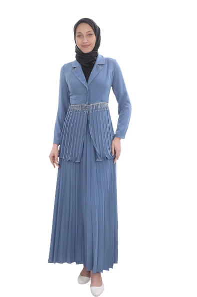 Pliseli Zincir Detaylı Takım 118-İndigo