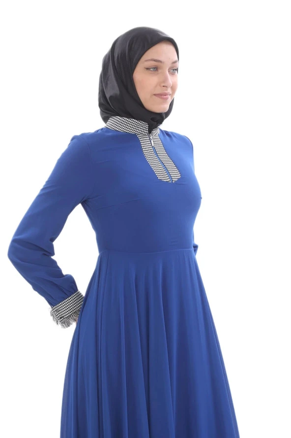 Pötikare Garni Detaylı Tesettür Elbise 704-Saks
