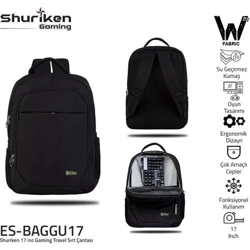 Shuriken ES-BAGGU17 17" Gaming ,Seyahat Laptop Sırt Çantası