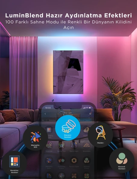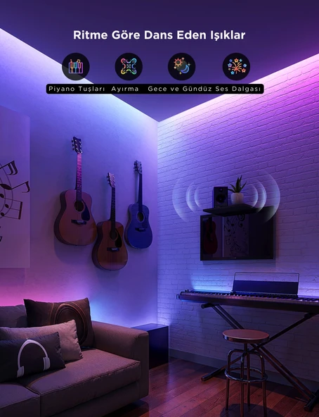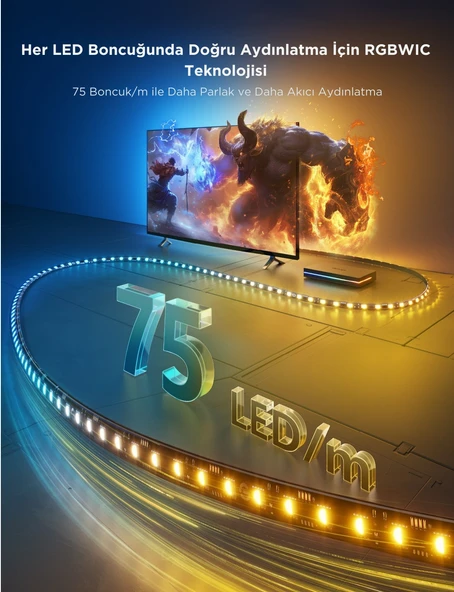 Govee Rgbıc Bağlı Tavan Aydınlatması 3 Metre, Uygulama Üzerinden Kontrol
