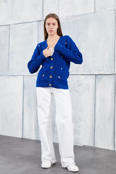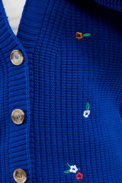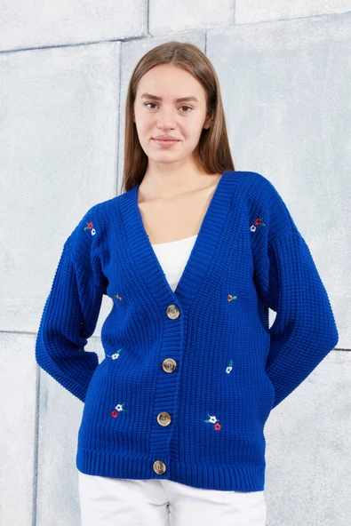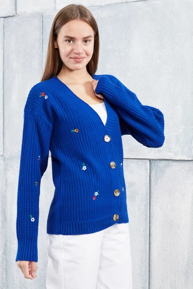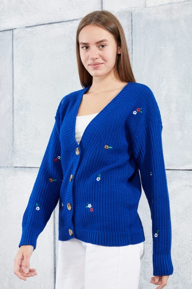 Lugmo Kadın Triko Hırka Çiçek Standart Beden Saks