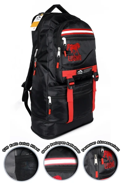 Deprem Çantası Körüklü Reflektörlü 65 Litre Siyah Kırmızı
