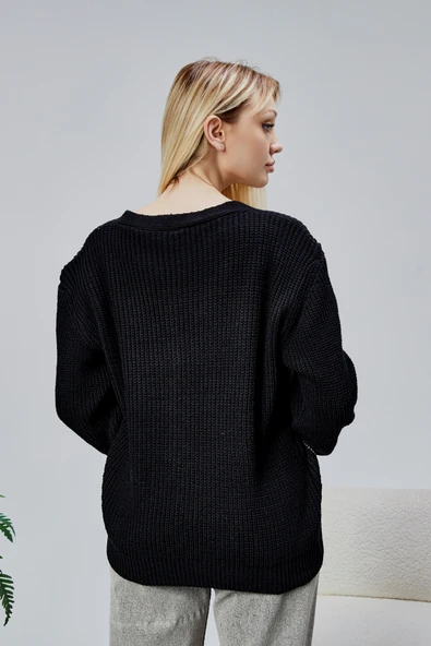 Lugmo Kadın Triko Hırka Akrilik iplik 80 cm Saç Örgülü Siyah