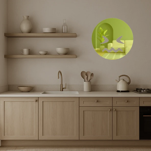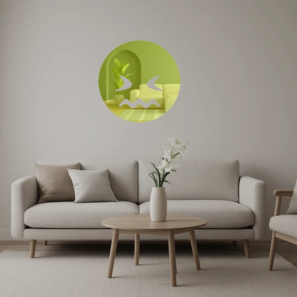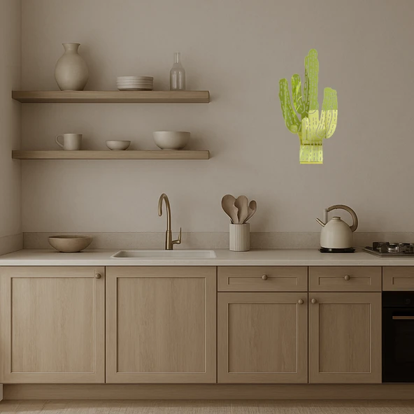 Geometrik Kaktüs Motifli Dekor Altın Aynalı Tablo