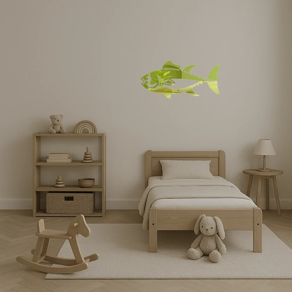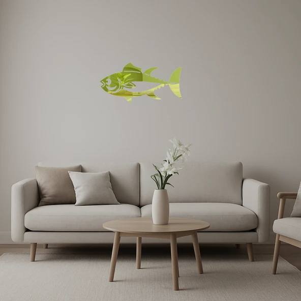 Modern Orkinos Balığı Tasarımlı Dekoratif Duvar Altın Aynalı Tablosu