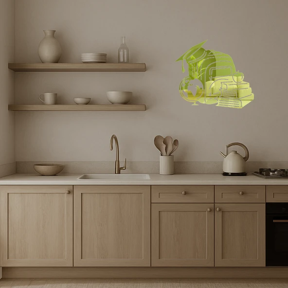 Sıcak Pizza Sanatı Dekoratif Altın Aynalı Tablo