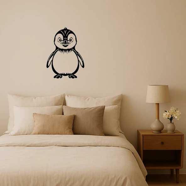 Sevimli Penguen Tasarımlı MDF Duvar Dekoru