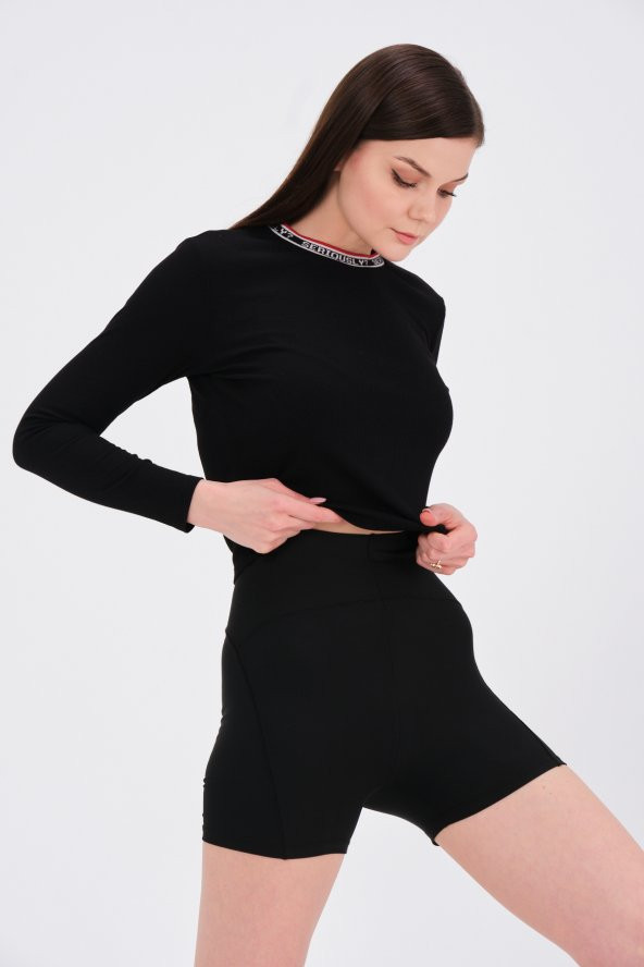 Siyah Yüksek Bel Toparlayıcı Şort Tayt