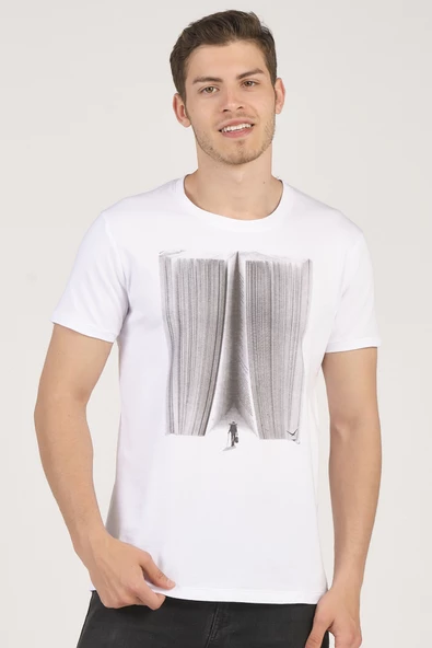 %100 Pamuklu Kabartma Baskılı Bisiklet Yaka Erkek T-Shirt