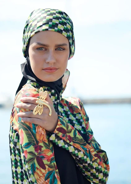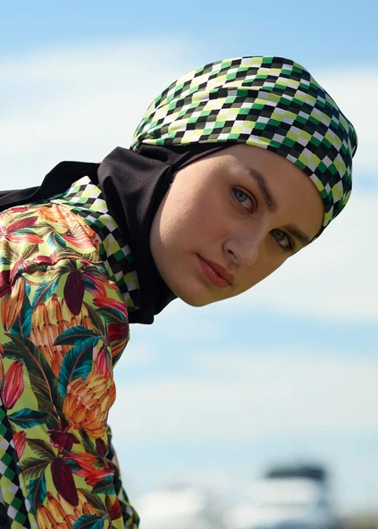 Tesettür Mayo Üstü- Fit Yeşil Çiçekli