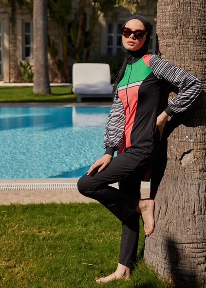Tesettür Mayo- Tek Üst - Batik Yeşil