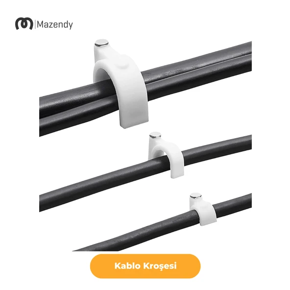 Çelik Çivili Kablo Kroşesi 0 Numara 50 Adet Kablo Tesisat Kroşe Plastik