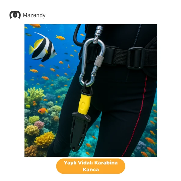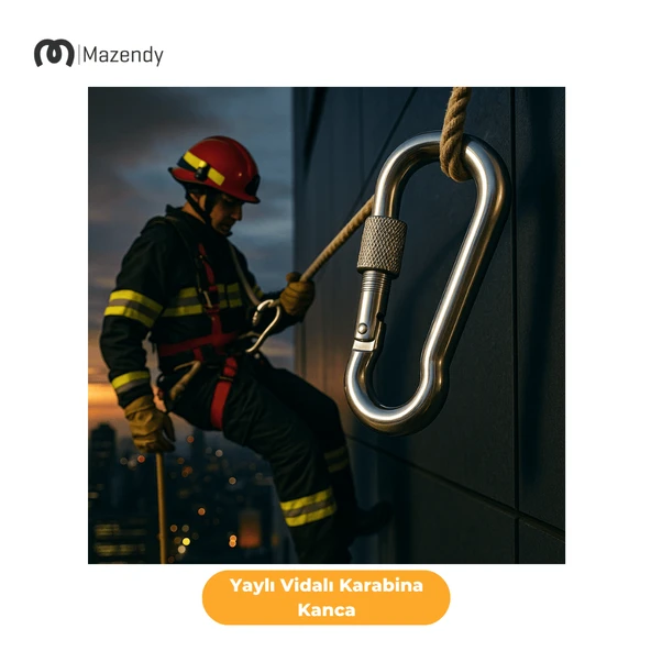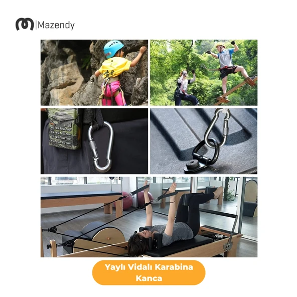 Vidalı Yaylı Karabina Kanca - 6x60 mm (1 Adet) - Kamp, Güvenlik, Emniyet, Anahtarlık