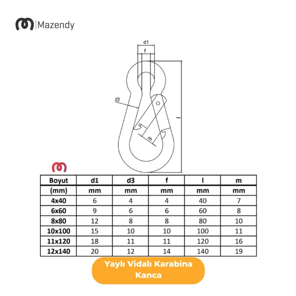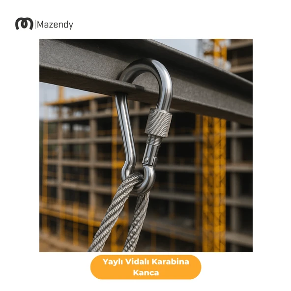 Vidalı Yaylı Karabina Kanca - 12x140 mm (1 Adet) - Kamp, Güvenlik, Emniyet, Anahtarlık