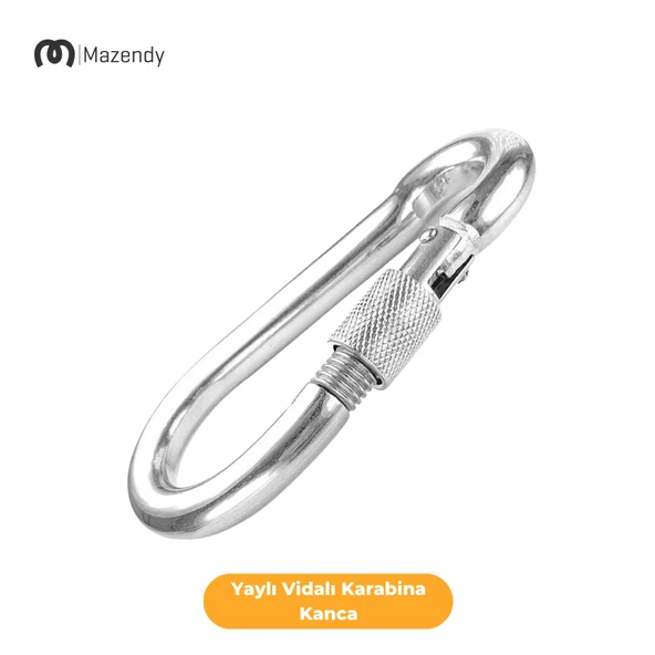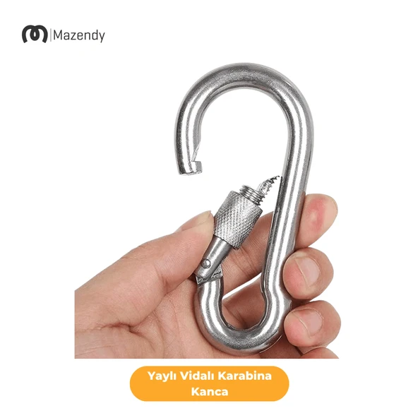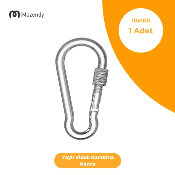 Vidalı Yaylı Karabina Kanca - 10x100 mm (1 Adet) - Kamp, Güvenlik, Emniyet, Anahtarlık
