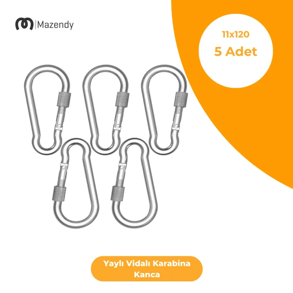 Vidalı Yaylı Karabina Kanca - 11x120 mm (5 Adet) - Kamp, Güvenlik, Emniyet, Anahtarlık