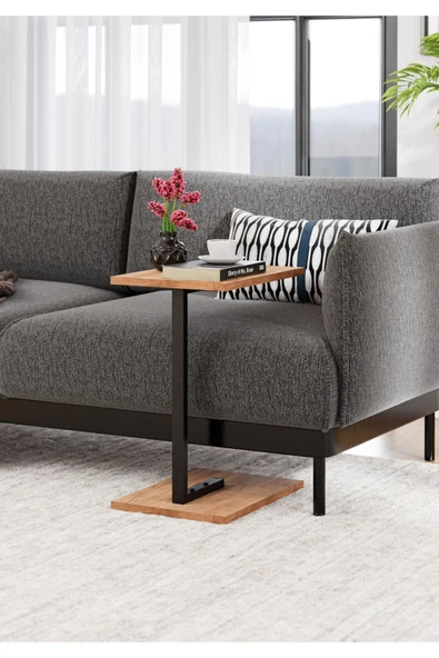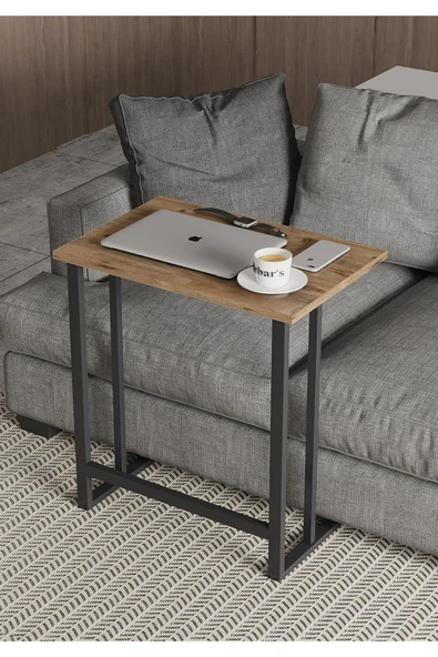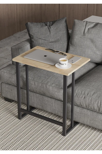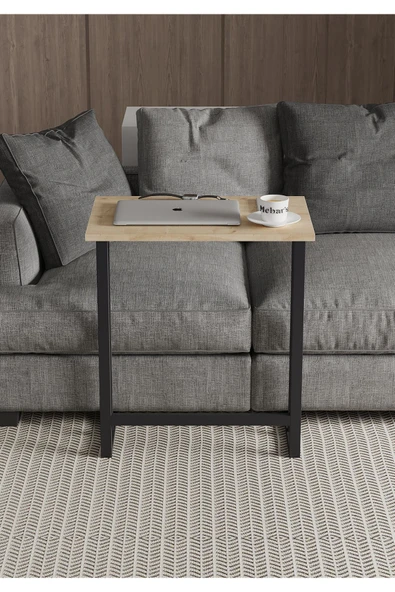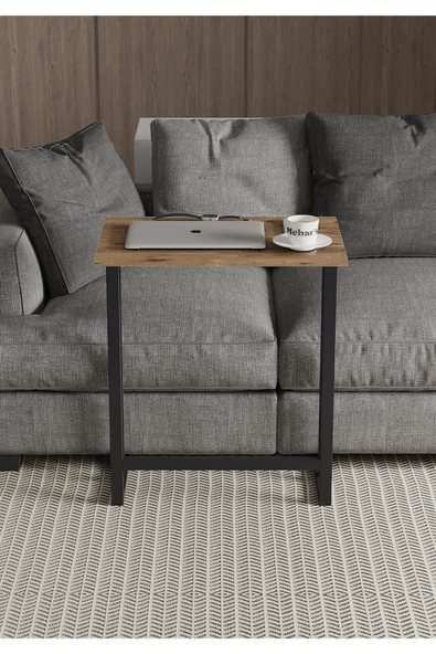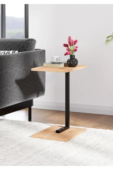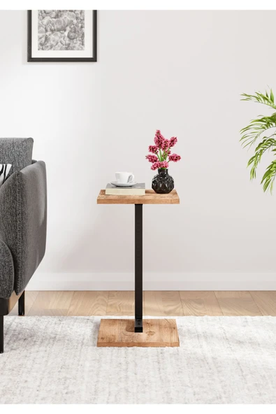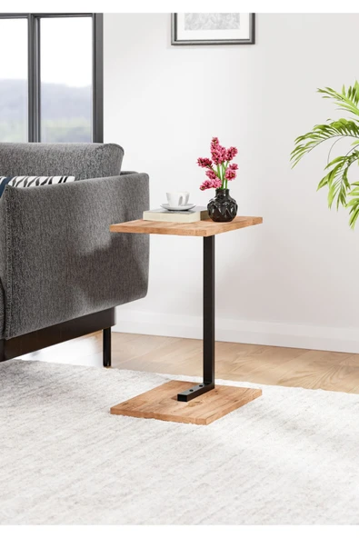 Zigon Sehpa, Metal ayaklı Tekli Sehpa,Koltuk Sehpası,C Sehpa,servis Sehpası -atlantik Çam
