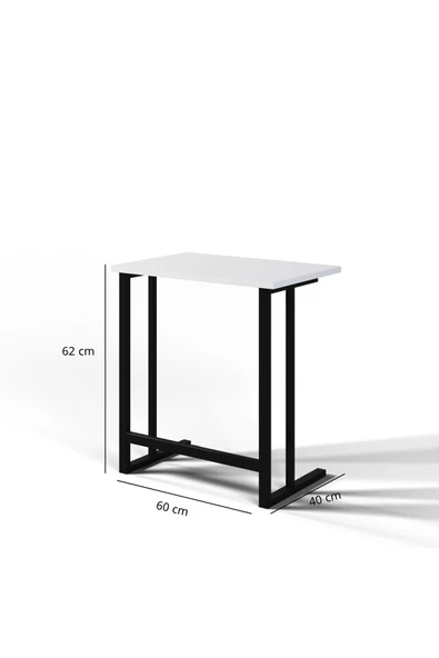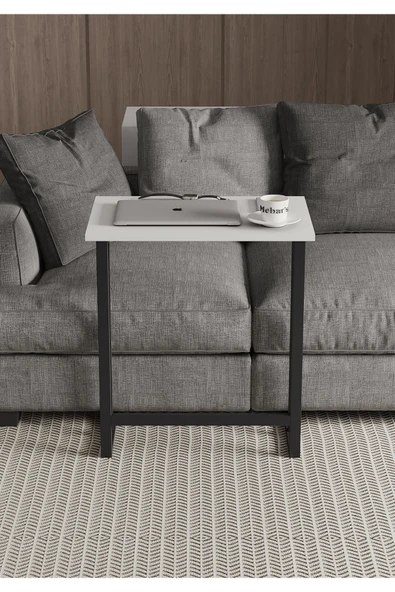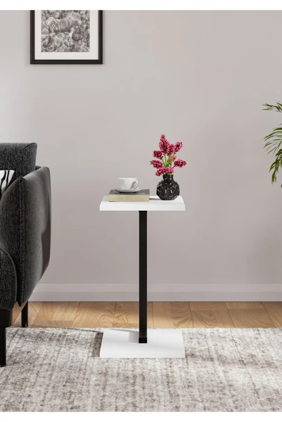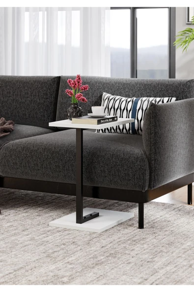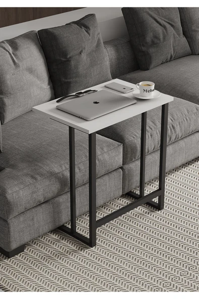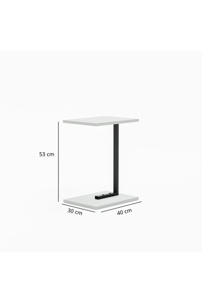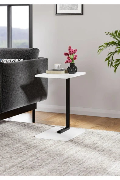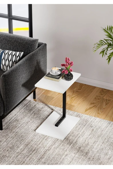 Zigon Sehpa,Metal ayaklı Tekli Sehpa, Koltuk Sehpası,C Sehpa,Servis Sehpası - Beyaz