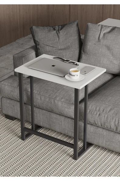 Laptop Sehpası Metal Ayaklı, Çalışma Sehpası, Kahvaltı Masası, Servis Sehpası - Beyaz