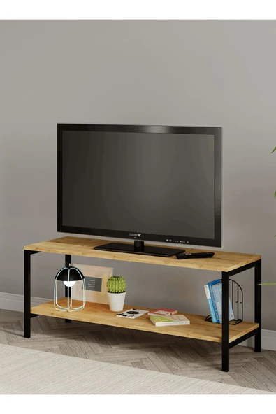 Oziba Tv ünitesi, Metal Ayaklı Televizyon Sehpası 120 cm - Atlantik Çam