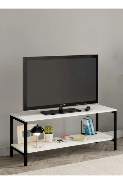 Oziba Tv ünitesi, Metal Ayaklı Televizyon Sehpası 120 cm - Beyaz