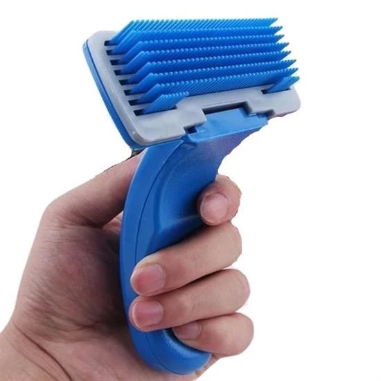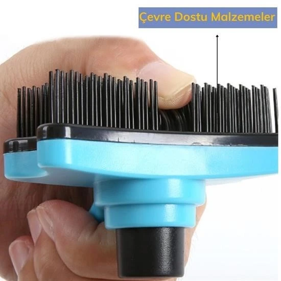 Kedi Köpek Tüy Toplayıcı Kendini Temizleyebilen Ergonomik Saplı Evcil Hayvan Tarağı Mavi