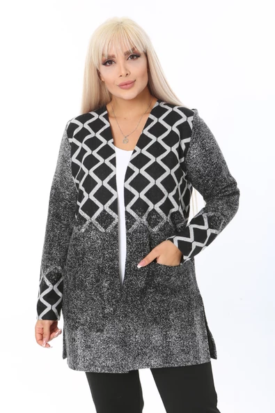 Melsay Butik Vizon Kazayağı Desen Kısa Büyük Beden Kadın Hırka