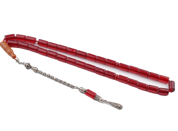 925 Ayar Püsküllü 99'Luk Namaz Ateş Kehribar Namaz Tesbihi