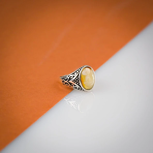 925 Ayar Gümüş Çakımlı İmame Nakkaş Gümüş İşlemeli Sıkma Kehribar Tesbih