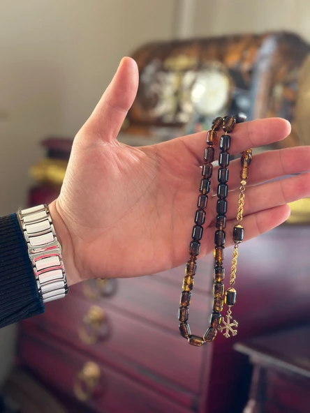 Özel Tasarım Püsküllü Sıkma Kehribar Tesbih