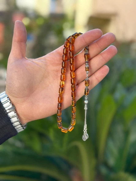 925 Ayar Gümüş Damla Kehribar Tesbih