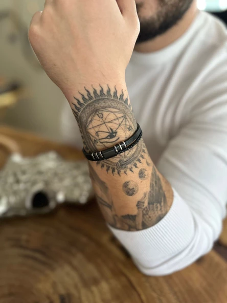 316L İtalyan Kararmaz Çelik Deri Erkek Bileklik