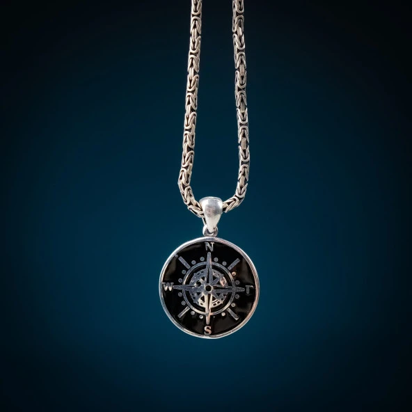 925 Ayar Pusula Erkek Gümüş (Silver )Kolye