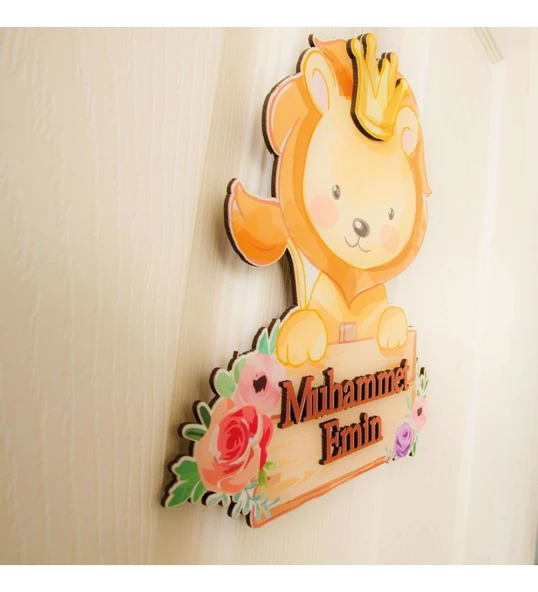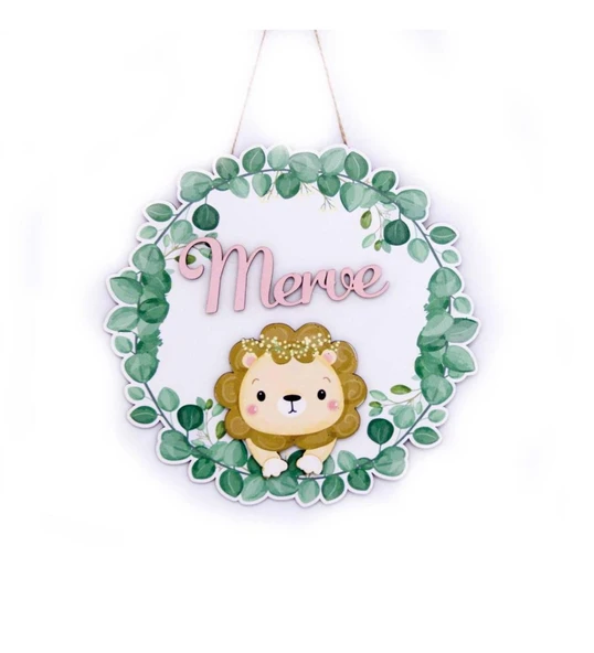 Kişiye Özel Tatlı Aslan Kapı Süsü 30x30cm