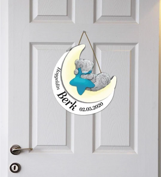 Meşgalem Yıldızı Kucaklayan Ayıcık Temalı Kişiye Özel Kapı Süsü