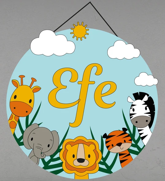Meşgalem Hayvanat Bahçesi Temalı Kişiye Özel Kapı Süsü