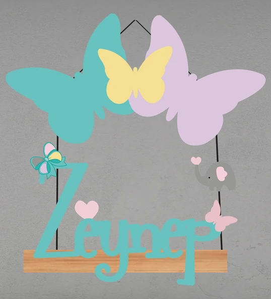 Meşgalem Kelebek Temalı Kişiye Özel Kapı Süsü