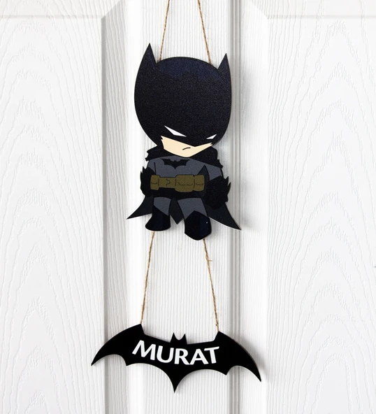 İsme Özel Temalı Bebek Odası Ahşap Kapı Süsü - Batman Temalı