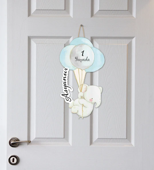 Meşgalem Balon Tutan Minik Fil Temalı Kişiye Özel Kapı Süsü