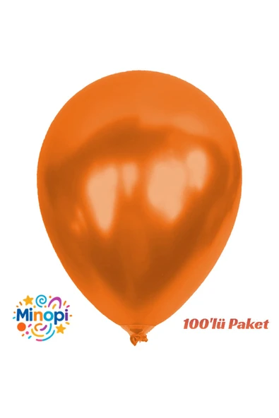 Minopi Turuncu Balon Desensiz Renkli Balon Metalik Balon Normal Ebat 100'lü Paket