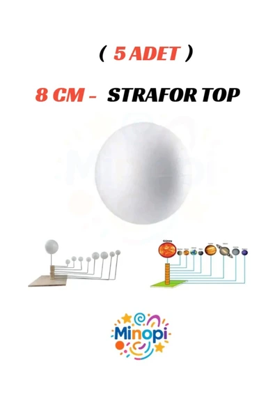 Minopi 5 Adet - 8 cm Strafor Top Köpük Top Beyaz Küre Güneş Sistemi Ödevi Hobi Süsleme