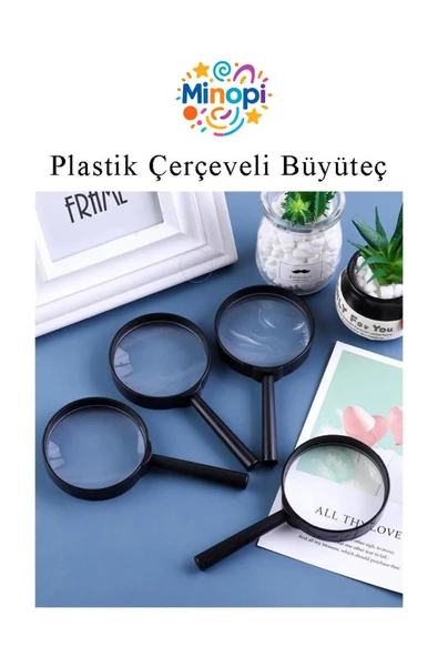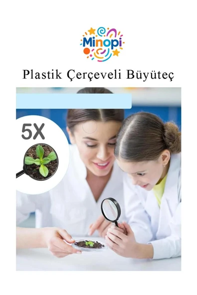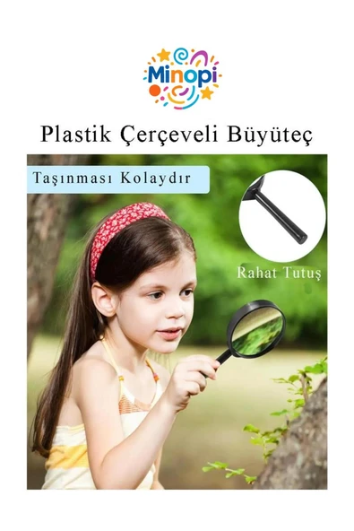 Minopi Plastik Çerçeve Saplı Büyüteç Mercek Deney Malzemesi - 60 mm