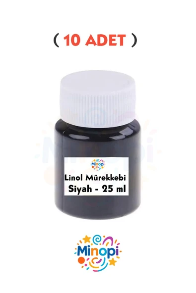 Minopi ( 10 Adet ) Linol Mürekkebi Siyah 25 ml Linol Baskı Mürekkebi Blok Baskı Sanat Hobi