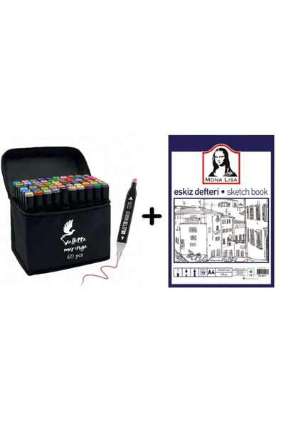 Minopi 60'lı Çift Taraflı Art Marker Keçeli Kalem Seti Çantalı + Mona Lisa Eskiz Defteri 50 Yaprak 120GR.