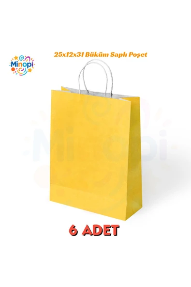 Minopi 6 Adet Büküm Saplı Sarı Çanta 25x12x31 cm Kağıt Çanta