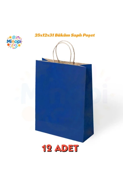 Minopi 12 Adet Büküm Saplı Lacivert Çanta 25x12x31 cm Kağıt Çanta