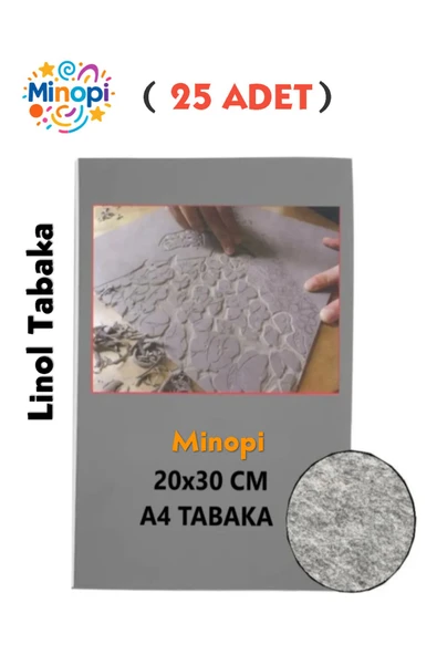 Minopi ( 25 Adet ) Linol Tabaka Levha 2,5 mm A4 Boyutunda 1. Kalite Linol Muşamba Gri